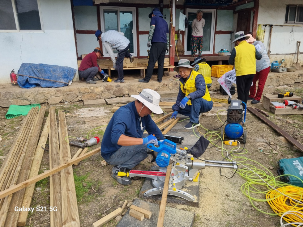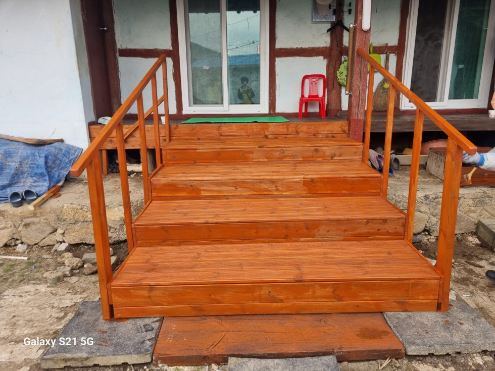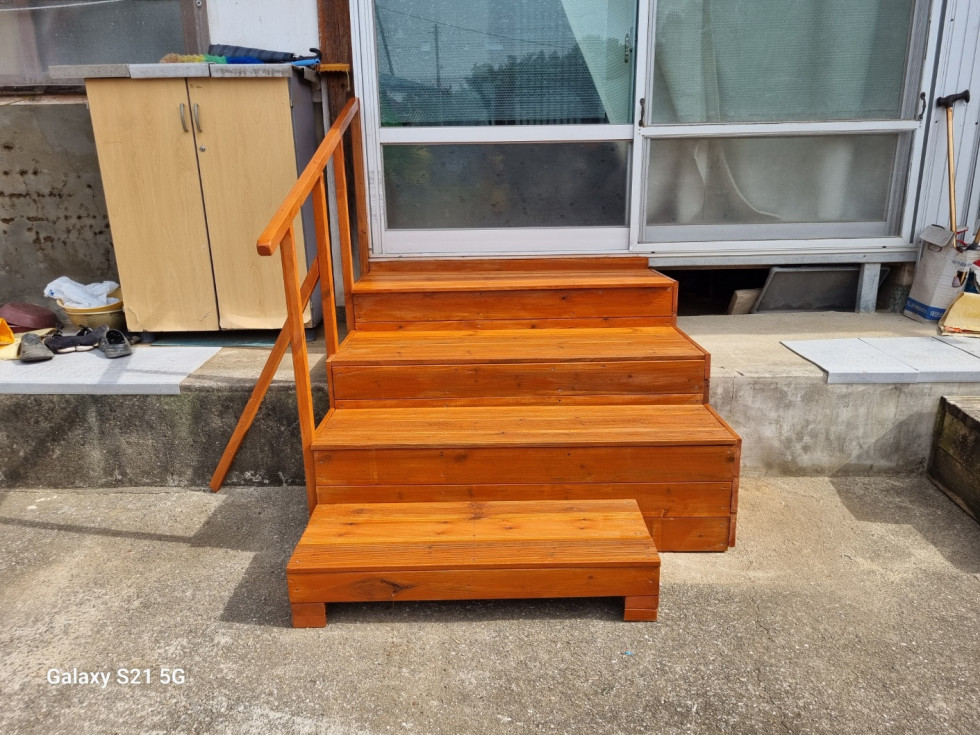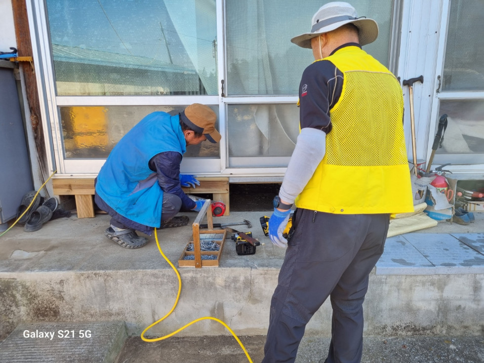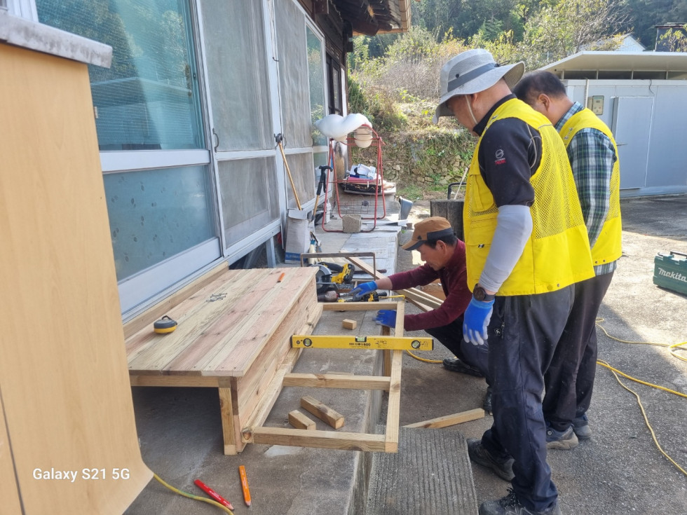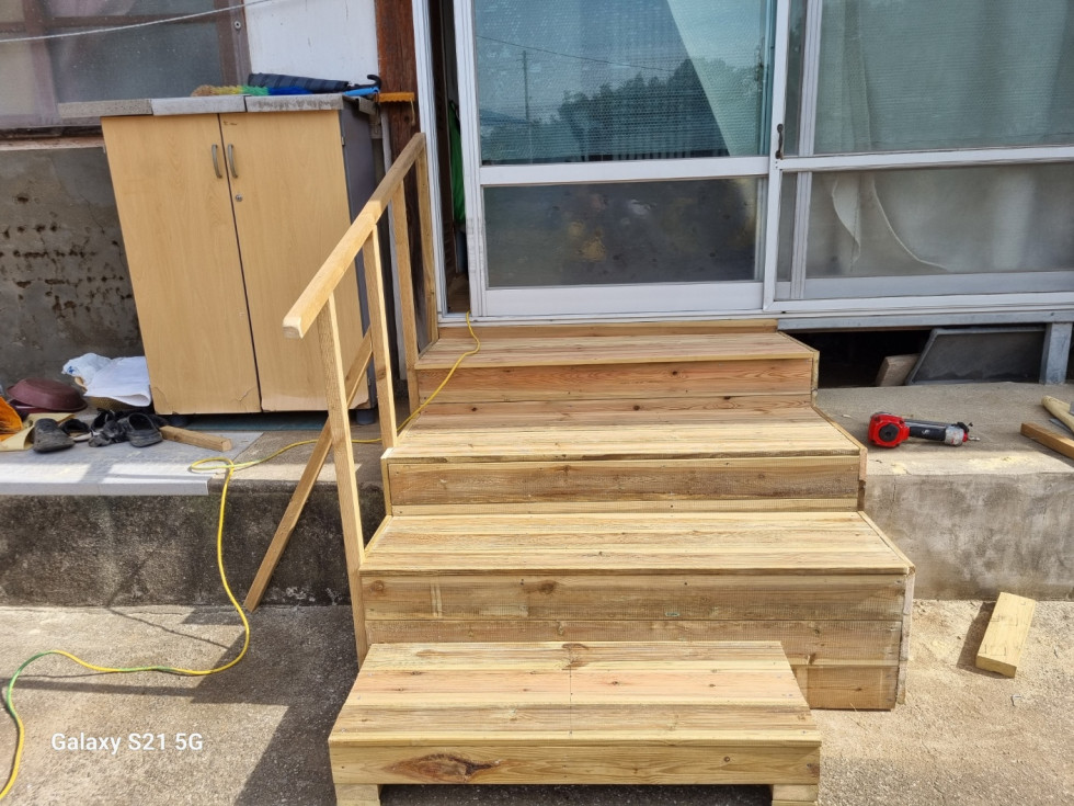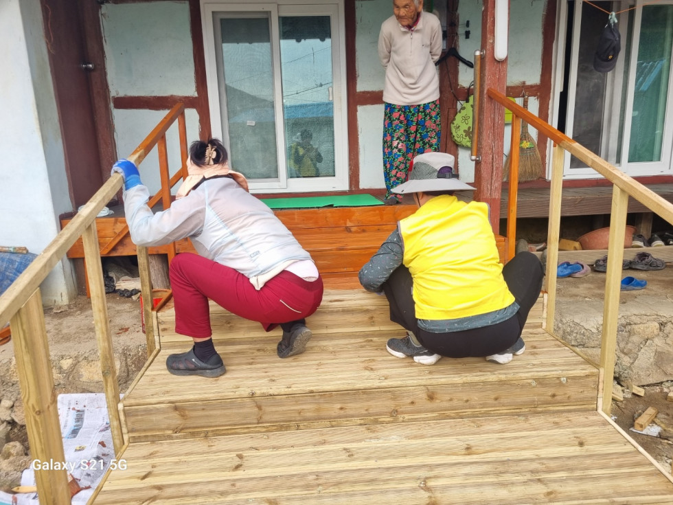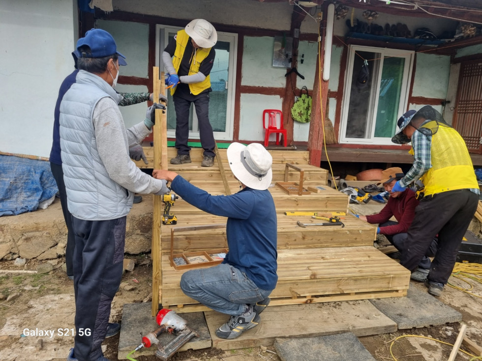 회원들은 안전하게 생활하실 수 있도록 발판과 난간을 정성껏 설치해드렸습니다