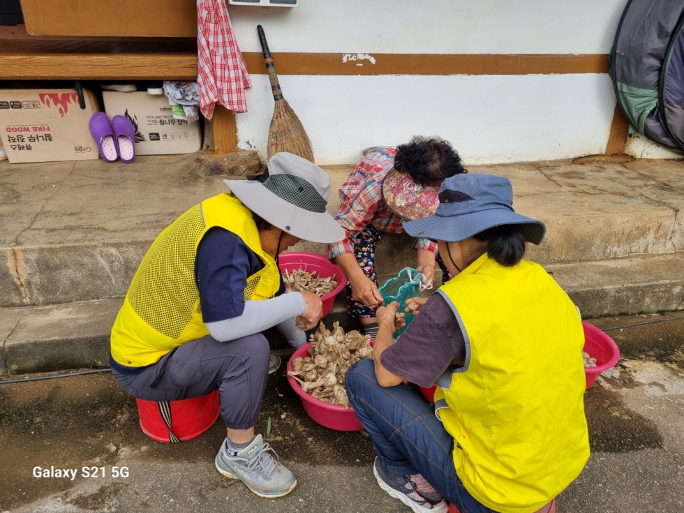 또한 마늘을 까고 계시던 할머니를 도와 회원들이 함께 마늘을 까며 이야기꽃을 피웠습니다