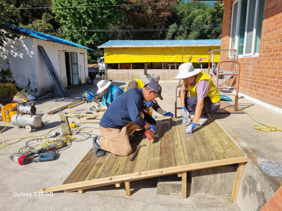 보성군귀농귀촌협의회에서는 제15회차 농촌재능나눔 활동으로 노동면 탄곡마을 한 노부부 가정을 방문하여 발판과 난간 설치 작업을 진행하였습니다