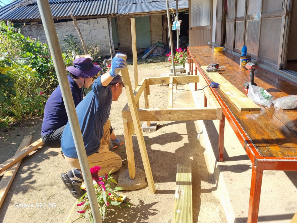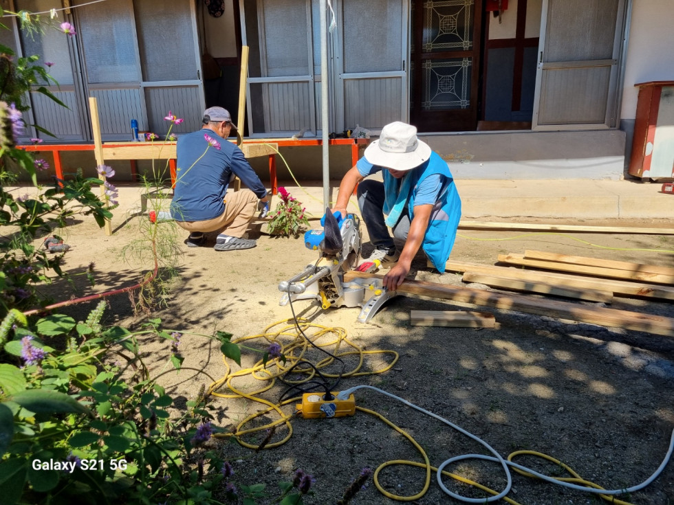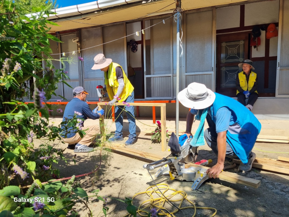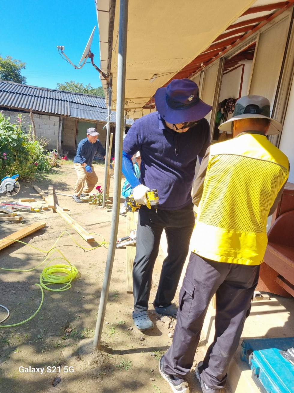 회원들은 안전한 생활을 돕기 위해 땁방을을 흘리며 정성껏 발판과 난간 설치 작업을 이어갔습니다