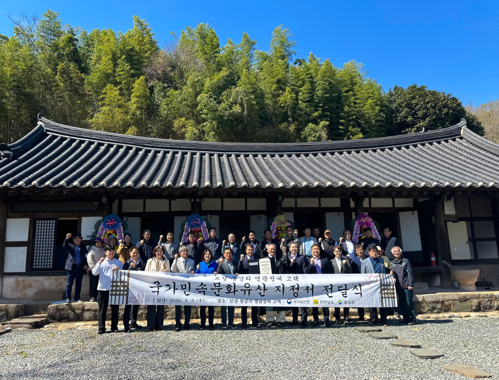 보성군은 지난 8일 「보성 봉강리 영광정씨 고택」 현장에서 국가유산청으로부터 국가민속문화유산 지정서를 전달받았다고 밝혔다.